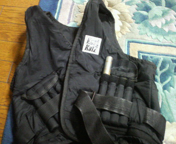 僕のトレーニンググッズ、ゴムだけではありません。トレーニング用の20キロのウエイトベストです。これを着て、腕立てしたり、いろいろやっています。家でも十分出来ますよ。(^ー^)