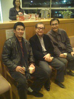 大変懐かしい方にお会いしました。なんと、自分がデビュー前に出さしてもらった、昼のプレゼントという番組の司会者、山川静夫さんにお会いしました。この番組の一回目の今週の歌ということで、大変緊張して、頭が真っ白になったのを覚えています。山川さんも懐かしがって、昔話にはながさきました。その隣は、この方も昔よく遊んだ作詞家の先生で喜多條忠「まこと」さんです。いやぁ、懐かしかったです(^ー^)
