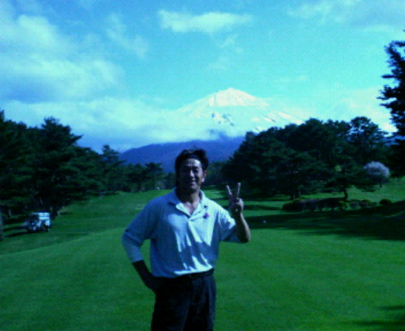 こんにちは、今日は富士山の近くでゴルフです。