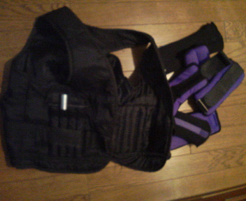 私のトレーニング用のグッズです、二十キロのベストに、手足アンクル用の重り各一キロ、これでトレーニングするとパワーつくよ(-_-;)スポーツマンNo,1に向けて、さっ、頑張るぞ(^-^ゞ