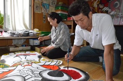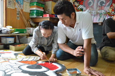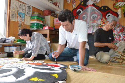 鬼凧の職人さんのお手伝い