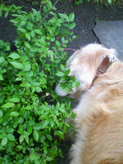 散歩をしていたら、レオンが草を物色して、