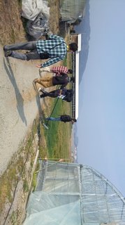 ビニールハウスの上に火山灰が凄いです。